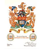 - The grant of the coat of arms to the University occurred in two stages. On 14 May 1913, shortly after its foundation, the University was granted a shield and a motto by the College of Arms. In 1981, the year of the seventieth anniversary of its foundation, the University applied for the other components of a full coat of arms, a crest and supporters. These were granted in 1984 (the grant also included a banner and a badge).